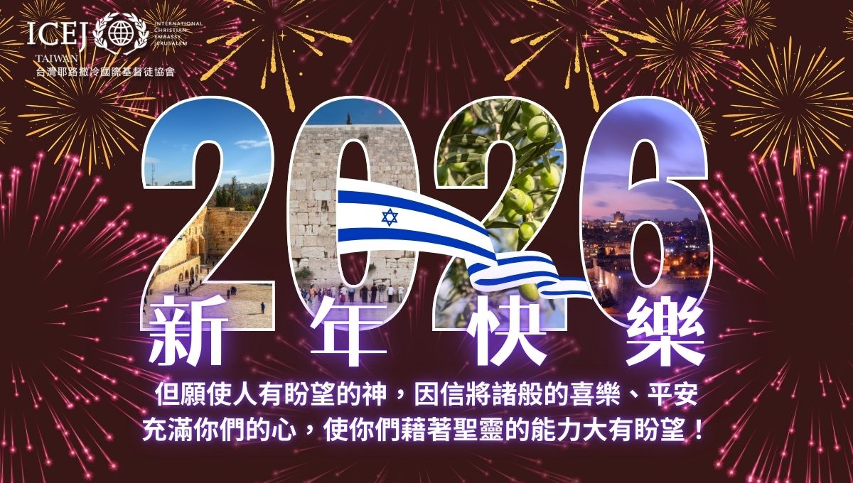 2026 new year 1聖誕節官網光明節22026ICEJ (2)icej 1200x680(1)icej1icej獨立紀念日1200 x 6802025大屠殺紀念日 (1200 x 680 像素)ICEJ2025復活節快樂 1200 x 680ICEJ Passover 1200 x 680普珥節快樂 (650 x 425 像素) (1200 x 650 像素) (1200 x 680 像素)新春快樂 2026年【亞洲興起 邁向錫安】ICEJ ENVISION亞洲特會2026年ICEJ ENVISION 亞洲特會【亞洲興起 邁向錫安】是一個匯聚全亞洲牧者、領袖與基督徒的區域性聚會。我們將在印尼巴淡島一同敬拜、聆聽聖經教導並分享異象。這不僅是一場聚會,更是一場心意更新、重燃異象、堅固基督肢體、影響城市與列國的屬靈運動!繼續閱讀 【🔥台灣ICEJ誠徵工作人員一位🫵】想加入台灣ICEJ的團隊嗎?歡迎點擊查看徵才資訊,一起加入服事以色列的行列吧!繼續閱讀 【以賽亞62禱告運動】2025年12月代禱信當我們步入十二月,也就是希伯來曆的基斯流月時,我們再次被提醒,這正是光明節/修殿節(Hanukkah)的時節。除了眾所熟悉的光明節故事之外,修殿節實為聖經中最具啟示性的時刻之一。這亦是歷史上充滿神蹟的季節,神在此時以超越人類力量的方式彰顯祂的信實。繼續閱讀 【誰拯救了以色列脫離伊朗?是上帝】在每一次「鐵穹」的攔截、每一架隱形轟炸機的出擊、每一次深入敵境的機密行動背後—都有一雙引導的手。繼續閱讀 【臺灣ICEJ與神長達21年的住棚節回應】跨越戰火與疫情,一段從《詩篇》開始、走進命定的耶路撒冷之路…..繼續閱讀