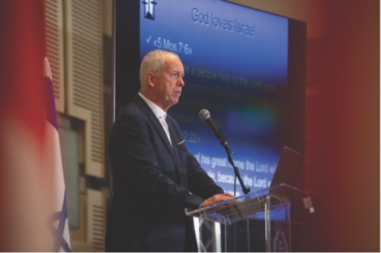 在2025年 Envision特會的第二天晚上,ICEJ國際理事會主席英戈爾夫.埃爾塞爾(Ingolf Ellßel)牧師帶來了強而有力的信息。(照片來源:Menorah (Shutterstock), Envision (ICEJ))