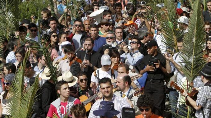 上週末,基督教世界慶祝耶穌凱旋進入耶路撒冷的棕梠主日。在一般情況下,棕枝主日遊行時,會有大批的人群揮舞棕櫚枝、唱著讚美詩,並沿著耶穌當年的腳蹤穿越橄欖山。大多數參與遊行的人是來自聖地或數十個海外國家的基督徒。