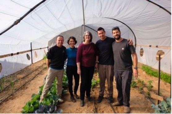 ICEJ慈惠事務部副總裁妮可.尤德(Nicole Yoder,中間)與學校領導們在溫室中合影。
