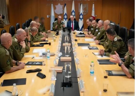 以色列國防部長以色列.卡茨與以色列國防軍官舉行針對現下局勢的會議。(照片來源:ARIEL HERMONY/DEFENSE MINISTRY)