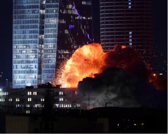 伊朗飛彈在特拉維夫市中心爆炸。(照片來源:網路影像的截圖)