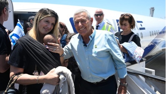 以色列移民融合部長和其他高層官員在本-古里安機場歡迎新移民。(照片來源:Sivan Shachor/GPO)