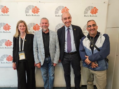 (左起)ICEJ義大利分部的維羅妮卡.維森廷、克謀智(Mojmir Kallus)、激進電台(Radicale)的魯本.德拉.羅卡(Ruben della Rocca)和薩利姆.沙拉什(Saleem Shalash)
