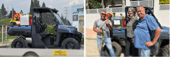 接著,我們抵達第三個訪視地點「塔爾梅莫沙夫」(Moshav Talmei),ICEJ最近提供一輛專用全地形車(ATV)和消防設備,以加強該社區的緊急應變能力。這輛全地形車上還加上標誌,以感謝來自ICEJ澳洲分部基督徒的慷慨奉獻。對於在危機發生後的緊急應變時間內,必須仰賴自身資源的社區而言,這些實用工具至關重要。