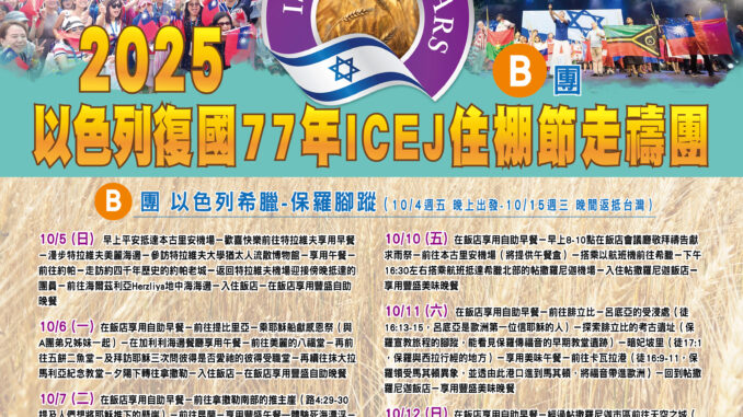 台灣ICEJ住棚節走禱團今年有兩個行程,