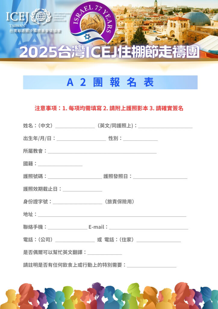 2025台灣ICEJ住棚節⾛禱團A2團報名表
